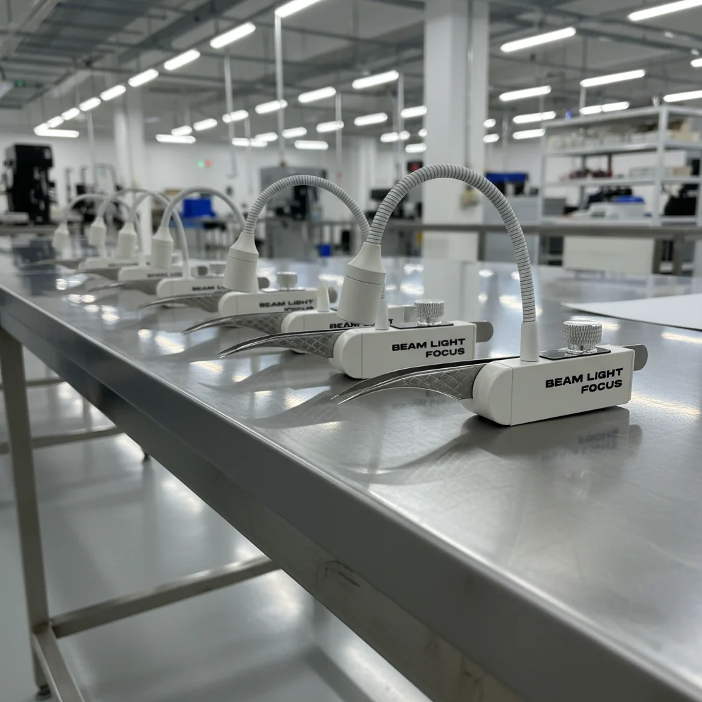 White LED Tweezer Lamp with 1.8 Watts & 405nm – Curing in just 1 Sec. Includes Tweezer – compatible with all common Separation Tweezers. Activation via Foot Pedal. Extremely precise Light Spot.