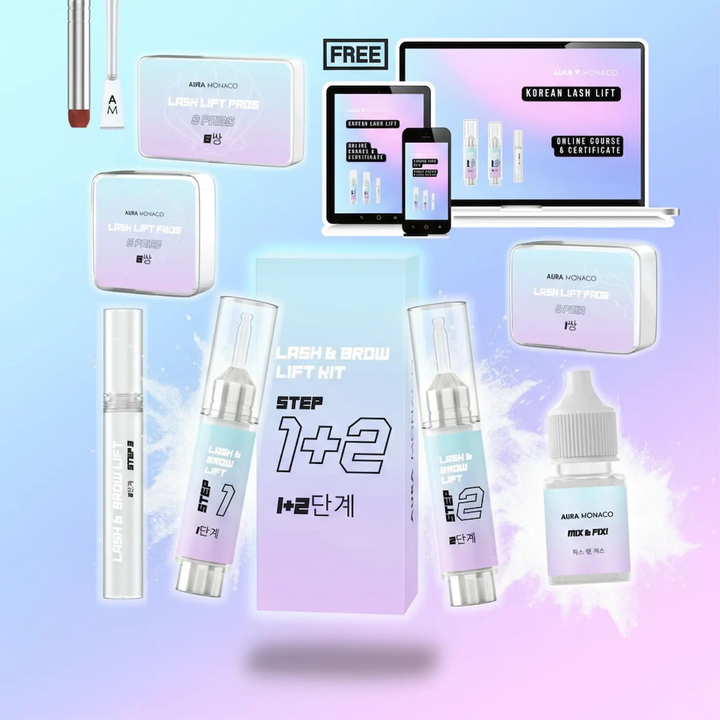 Revolutionary AURA Monaco Korean Lash Lift with ALL the Products you need + FREE Online Course & Certificate. Better Results, gentler Treatment.
